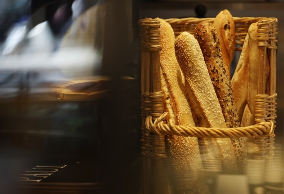 这是4月15日在法国巴黎一家面包店拍摄的待售的法棍。法国国家统计和经济研究所15日发布数据显示,法国3月消费者价格指数(CPI)同比上涨4.5%、环比上涨1.4%,创1985年12月以来最大同比涨幅。新华社记者高静摄