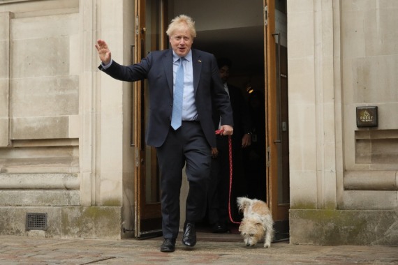 5月5日,英国首相、保守党领袖鲍里斯·约翰逊在伦敦一家投票站投票后准备离开。新华社发(蒂姆·爱尔兰摄)