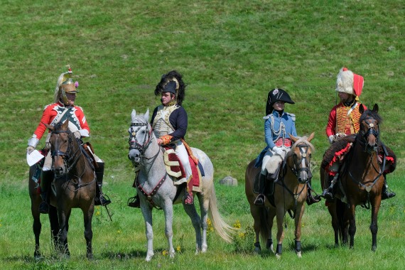 图片是2021年8月14日在比利时滑铁卢战役原址上举行的古装骑术比赛。新华社记者张铖摄