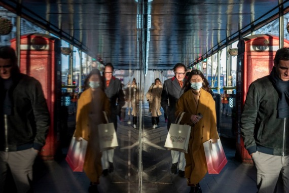 2021年12月9日,行人走在英国伦敦市中心的街道上。新华社发(史蒂芬·程摄)