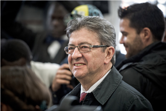 4月23日,在法国巴黎一处投票站,极左翼组织“不屈法国”候选人让-吕克·梅朗雄参加法国总统选举投票。(新华社发,于贝尓·勒沙摄)