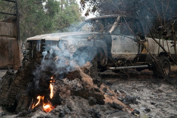 这是7月25日在美国加利福尼亚州马里波萨县拍摄的被烧毁车辆。美国加利福尼亚州约塞米蒂国家公园附近一场山火的过火面积已达近70平方公里,数千人被迫疏散。新华社发(李建国摄)