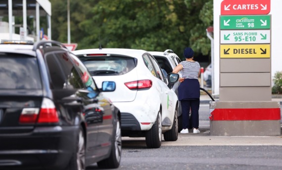 8月18日,人们在法国巴黎郊区的一处加油站加油。新华社记者高静摄