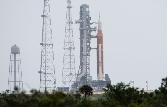 目前,98米高的“太空发射系统”仍立在肯尼迪航天中心的39B发射台,顶部搭载装载有3个人体模型的“猎户座”飞船。