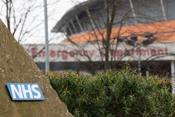 这是4月1日在英国曼彻斯特一家医院拍摄的国民保健制度标识。新华社发(乔恩·休珀摄)