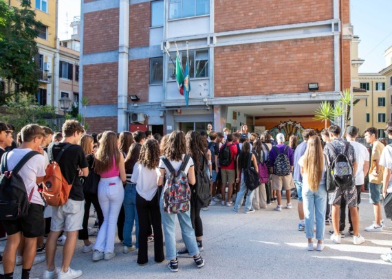 9月12日,意大利罗马一所中学的学生准备进入教室。新华社发