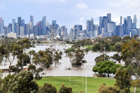 这是10月14日在澳大利亚维多利亚州拍摄的被洪水淹没的墨尔本郊区。新华社发(白雪摄)
