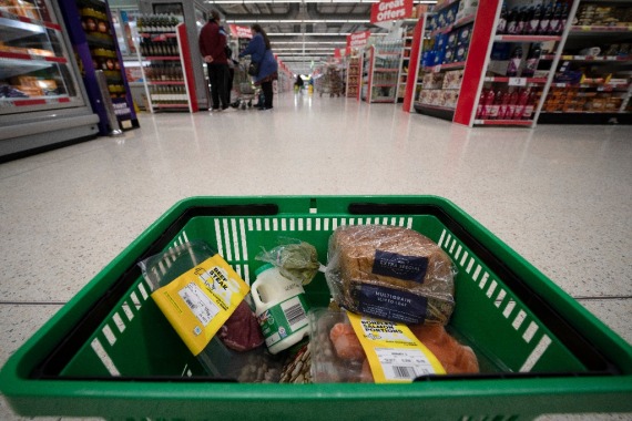 这是10月7日在英国曼彻斯特一家超市拍摄的购物篮内的商品。新华社发(乔恩·休珀摄)