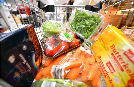 这是11月11日在德国柏林一家超市内拍摄的购物车内的商品。(新华社记者任鹏飞摄)
