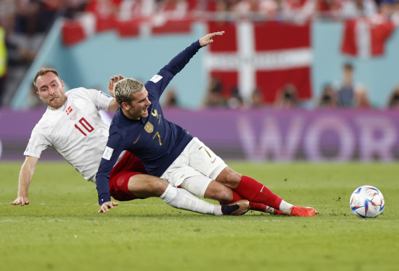 丹麦队并非传统豪门,但“童话王国”却时不时给法国队上演“鬼故事”:2002世界杯小组赛末轮,正是他们2:0击败法国队,葬送了后者的晋级希望,齐达内停球不慎跌倒的场景令人唏嘘。2018年世界杯小组赛末轮,已经提前出线的法国队与丹麦队心照不宣地“磨洋工”,互交白卷后携手晋级,遭遇到了卢日尼基体育场全场球迷的嘘声。今年9月结束的欧国联小组赛,法国队险些降级,在此过程中他们遭到了丹麦队的“双杀”。