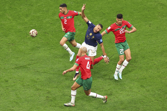 在这位后腰球员调度下,摩洛哥队进攻层层推进,边路频频下底。其中,“大巴黎”后卫阿什拉夫与切尔西边锋齐耶赫的“右路连线”,最为犀利,不断制造杀机,使得法国队左路防线,岌岌可危。若不是门前包抄的队友,或是射门犹豫,或是临门一脚欠佳,摩洛哥队完全可能扳平甚至反超比分。