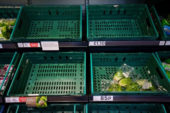 由于部分果蔬供应出现短缺,包括乐购公司在内的一些英国大型超市对西红柿和黄瓜等实施限购。社交媒体上流传大量英国超市果蔬货架空空的图片。