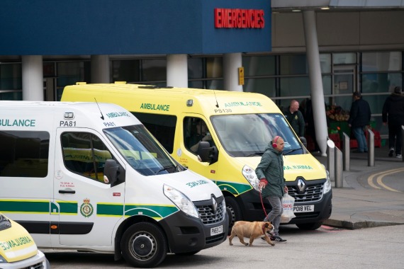 图为2022年4月1日,一名男子经过英国利物浦一家医院的急诊室。新华社发(乔恩·休珀摄)