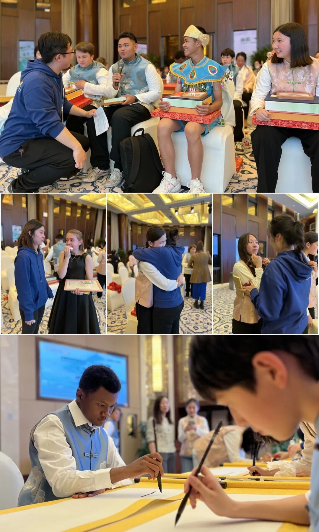 三位比利时华裔小大使31日晚,中国宋庆龄基金会为结束研习活动即将回国的“小大使”们举行了欢送晚会,国际合作交流部、中国宋庆龄青少年科技文化交流中心有关负责人为“小大使”们送上精心准备的纪念品和真挚的祝福。来自斯里兰卡、阿联酋、澳大利亚、蒙古、缅甸、西班牙等国的“小大使”竞相登台,表演了古典舞、孔雀舞、街舞、诗朗诵、绕口令等节目,在小伙伴和家长、老师的热烈掌声中一展风采。“小大使”们在卷轴上写下活动寄语,相互交换联系方式,赠送具有本国特色的小礼物,紧紧拥抱,依依惜别。短短几天里,“小大使”们与陪伴的中方老师和工作人员已经成为好朋友,分别之际,都纷纷表示舍不得说再见,期待明年再相逢。来自布鲁塞尔的王心慧拿着自己吹的糖人,高兴地说,这是我第一次体验吹糖人,感觉很奇妙。我希望这样的中国非物质文化遗产能够继续延续下去,也希望以后能在布鲁塞尔的街头看到吹糖人的艺术家。一周的研习活动时间转瞬而过,“小大使”们怀着依依不舍的心情满载而归,带着满满的收获,带着美好的回忆,带着对未来的期待。衷心祝愿各位“小大使”返程顺利,回国后继续用自己的眼睛观察世界,用自己的话语解说中国,用互联网传播中国优秀传统文化,人人都是自媒体,人人都是“小大使”,真正成为“文化的使者,友谊的桥梁”!未来,希望更多参与活动的各国青少年和合作机构代表相聚在中国,成为中国的朋友,因活动结缘中国、结缘中国文化、结缘广大青年朋友!