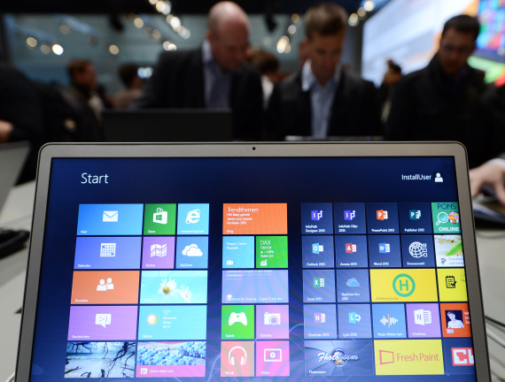 2013年3月5日,人们在德国汉诺威IT展微软公司展台体验装有windows8操作系统的电脑。新华社记者马宁摄