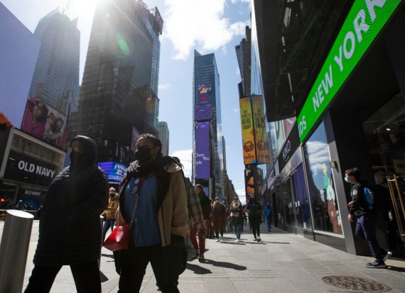 2022年3月29日,人们走在美国纽约时报广场。新华社记者王迎摄
