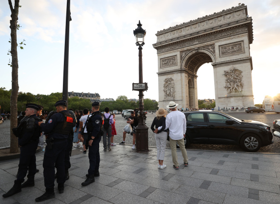 7月2日晚间,警察在法国巴黎凯旋门附近巡逻。新华社记者高静摄