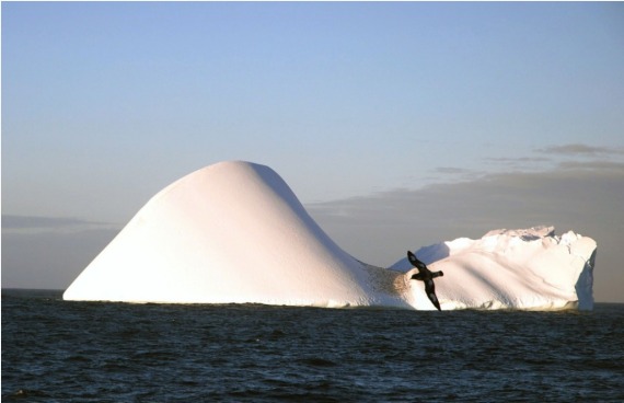 这是2008年1月3日在南极半岛附近的威德尔海拍摄的一只海鸟在冰山旁翱翔。新华社记者张建松摄