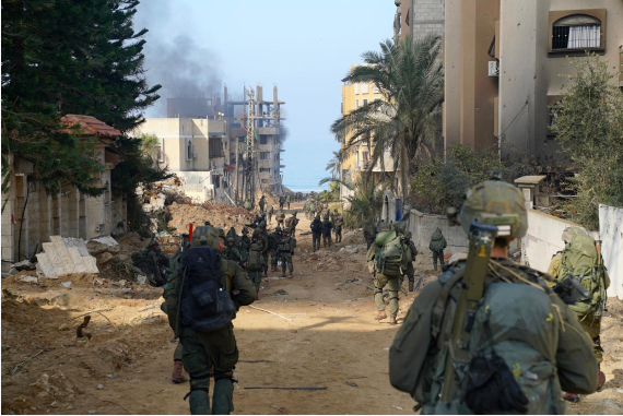 这张以色列国防军12月3日发布的照片显示,以军地面部队在加沙地带进行军事行动。新华社发