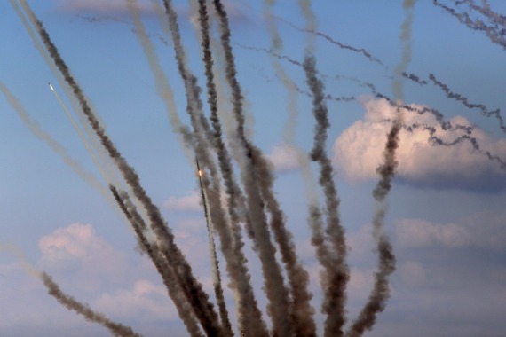 这是10月10日在加沙城拍摄的向以色列发射的火箭弹。新华社发(里泽克·阿卜杜勒贾瓦德摄)