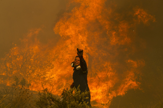 2023年8月22日,消防员在希腊首都雅典附近的查西亚村灭火。2023年夏天,创纪录极端高温席卷欧洲大陆,希腊等国家野火频发。新华社发(马里奥斯·罗洛斯摄)