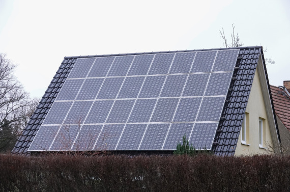 2024年1月4日在德国柏林拍摄的一户居民家屋顶安装的太阳能板。新华社记者任鹏飞摄