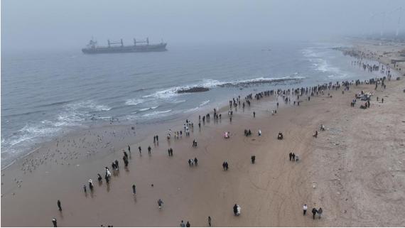 新华社济南2月21日电(记者李志浩) 浪花层叠,海鸥盘旋,相机快门声不断……春节假期,中国东部沿海一处沙滩上游客络绎不绝,他们不只为看海,更为观赏一艘搁浅于此的轮船。