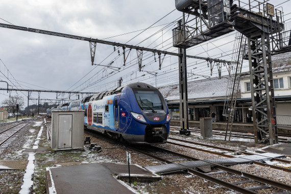 1月8日,列车驶入法国巴黎近郊的朗布依埃火车站。新华社发(奥雷利安·莫里萨尔摄)