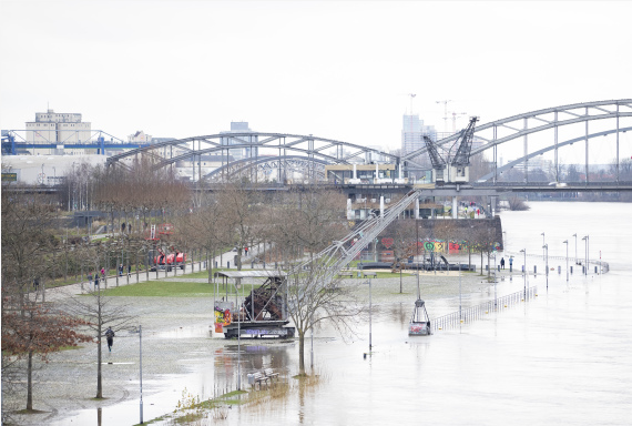 1月7日,在德国法兰克福,美因河的河水溢出堤岸。新华社记者张帆摄