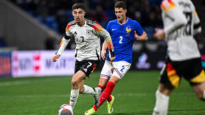 本场比赛主裁判刚吹响开场哨,克罗斯传球给维尔茨,后者带球调整直接轰出世界波,打入他在德国成年国家队第一粒进球。此时,开场仅仅7秒钟,德国队1:0领先。