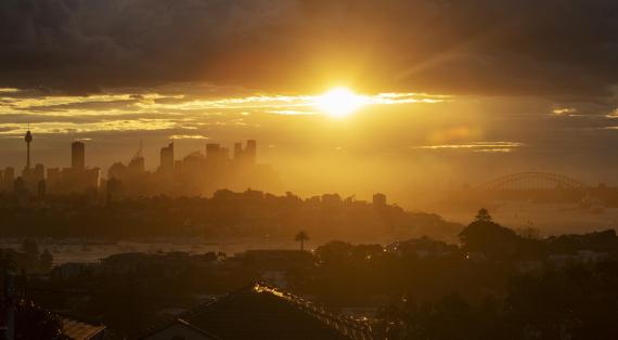 这是4月7日拍摄的澳大利亚悉尼日落景色。新华社记者马平摄