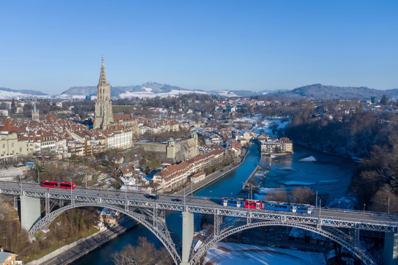 这是1月20日在瑞士伯尔尼拍摄的城市风光(无人机照片)。新华社记者孟鼎博摄