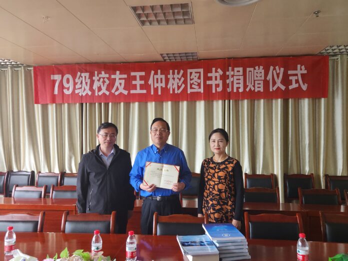 在图书捐赠仪式上,学校相关部门的领导介绍了校园建设、学科发展、师资队伍、馆藏图书、电子书库等情况。他们表示母校欢迎所有校友常回母校来走走,来看看。