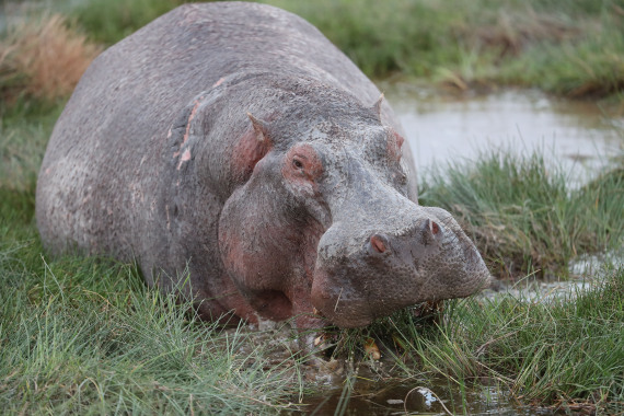 河马属于半水生哺乳动物,四肢较短。成年河马体型巨大,体重可达3吨多。