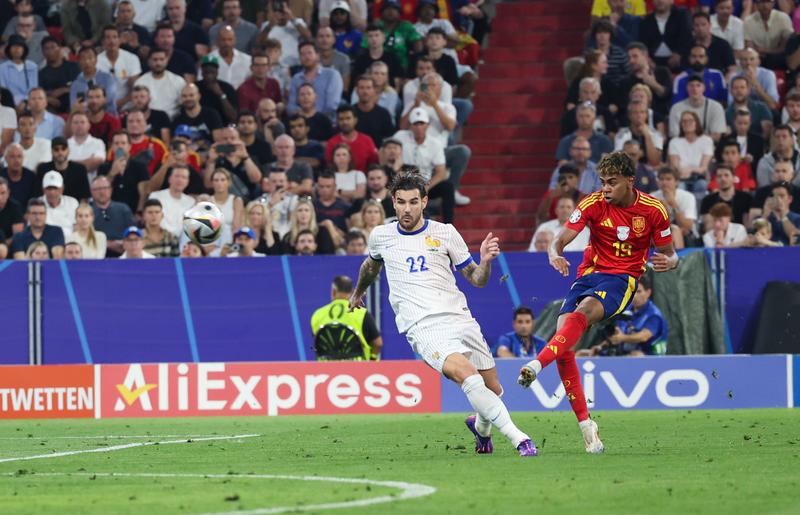 当晚,在率先进行的一场半决赛中,法国队由穆阿尼头球破门打破僵局,但西班牙队新星亚马尔随后远射扳平比分,奥尔莫4分钟后的大力抽射造成法国队乌龙球,最终西班牙队2:1获胜。