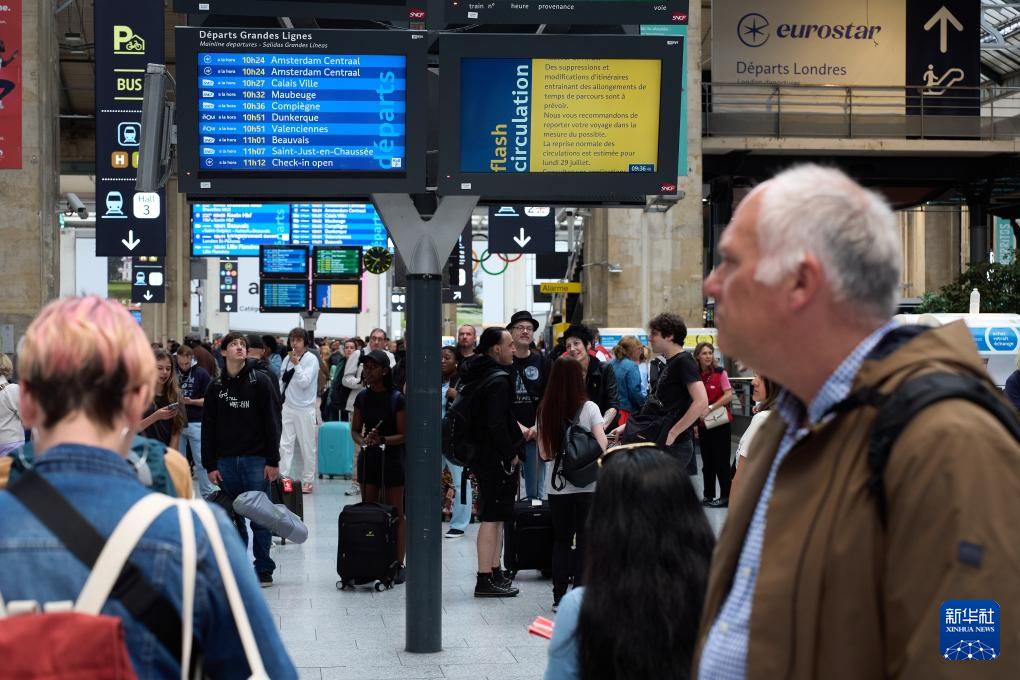 7月26日,乘客在法国巴黎北站等候列车。新华社记者孟鼎博摄