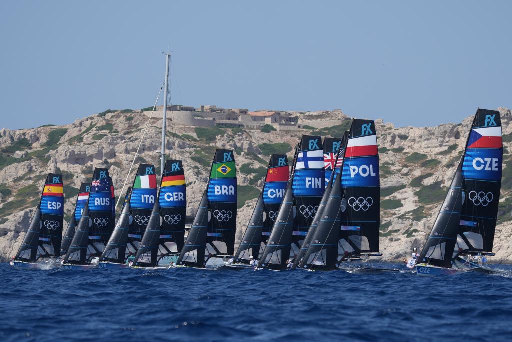 7月30日,参赛选手在比赛中。当日,在法国马赛举行的巴黎奥运会帆船项目女子49人FX级比赛进入第三个比赛日。新华社记者 郑焕松 摄