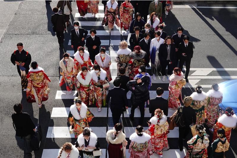 (荆晶) 这是2023年1月9日在日本横滨拍摄的参加成人礼仪式的青年男女。新华社记者张笑宇摄