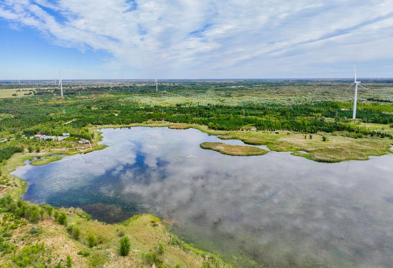 图为科尔沁沙地中的湖泊湿地。新华社记者连振 摄