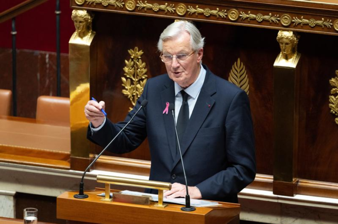 10月1日,法国新总理巴尼耶在位于巴黎的法国国民议会发表演讲。新华社发(杰克·陈摄)