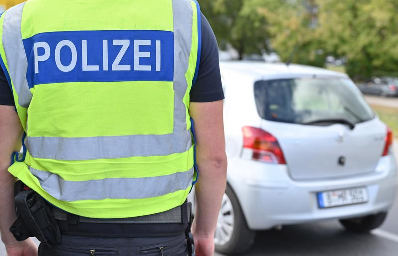 9月10日,在位于德国和波兰边境的德国城市奥得河畔法兰克福,警察在边检站执勤。新华社记者任鹏飞摄