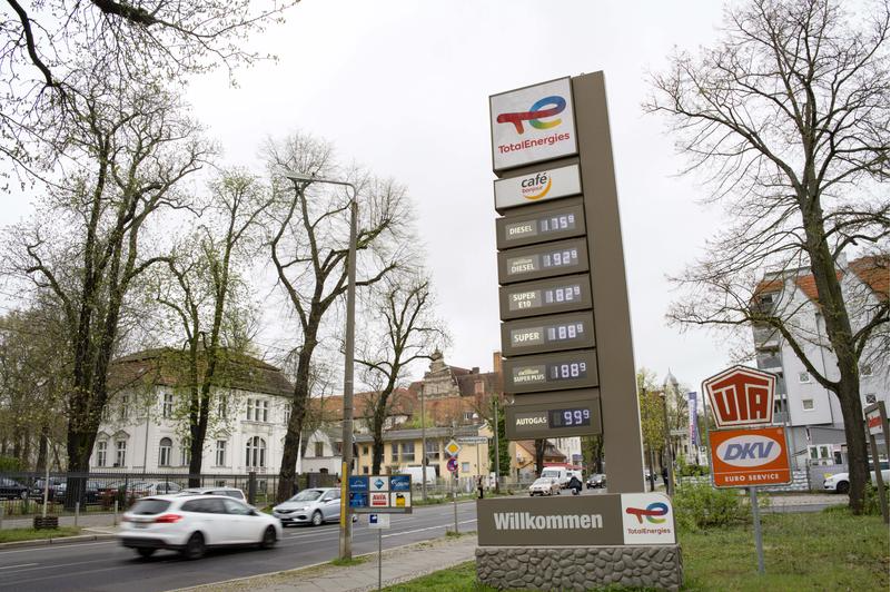 4月3日,汽车驶过德国首都柏林的一家加油站。新华社记者任鹏飞摄