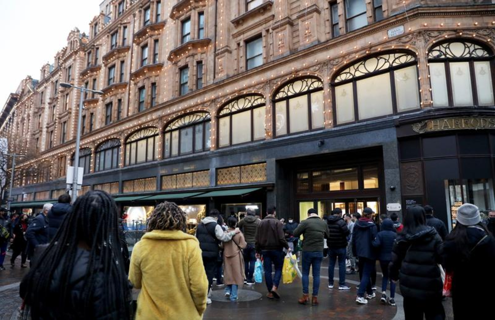 2021年12月26日,人们走向英国伦敦的哈罗德百货商店。新华社记者李颖摄