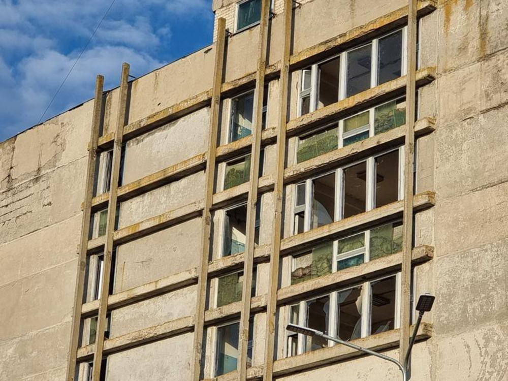 这是9月10日在乌克兰切尔卡瑟州拍摄的在无人机爆炸冲击中受损的建筑。乌克兰空军称,俄军10日凌晨对乌克兰发射了2枚导弹和46架攻击型无人机。新华社发