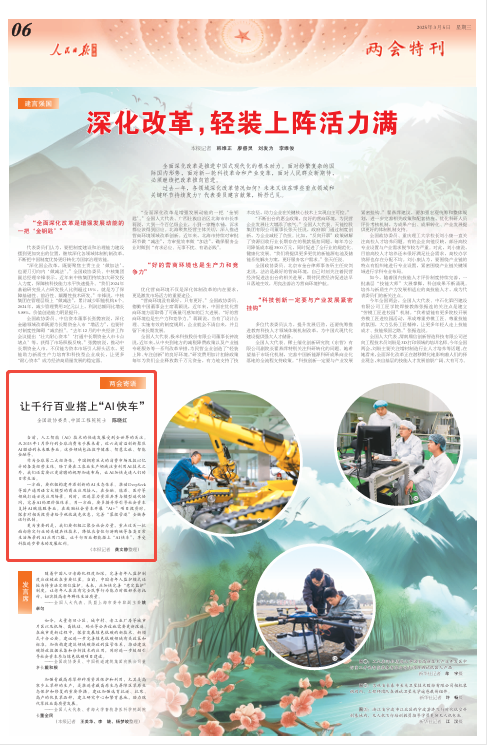 更为重要的是,我们要积极汇聚全社会力量,重点攻关一批面向特定行业的关键共性技术,降低衣食住行游购娱等各类日常生活场景的AI应用门槛,让千行百业都能搭上“AI快车”,享受科技进步带来的发展红利。(全国政协委员、中国工程院院士 陈晓红 本报记者 龚文静整理)