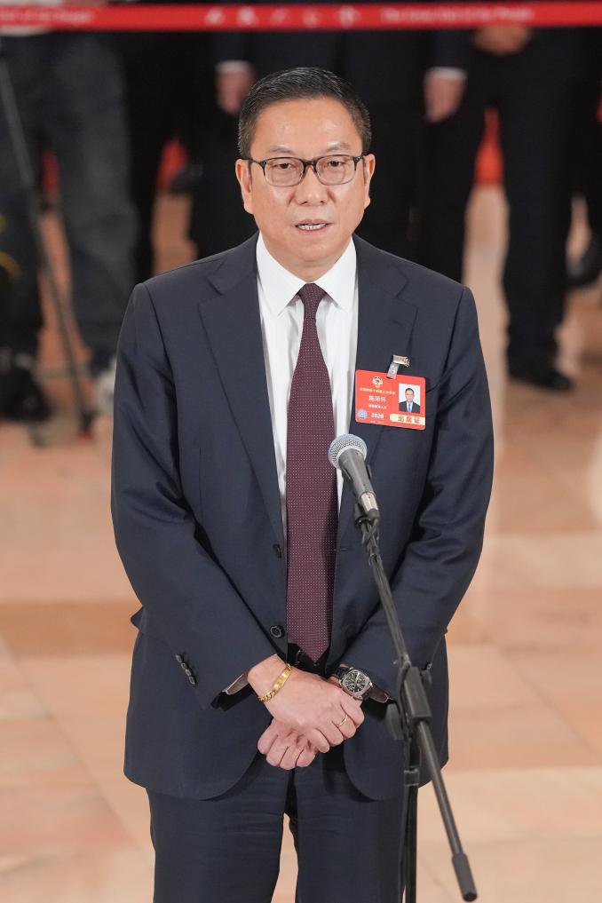 3月10日,全国政协十四届三次会议第三场“委员通道”集体采访活动在北京人民大会堂举行。这是全国政协委员何润生接受媒体采访。新华社记者 金良快 摄