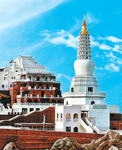 经过美轮美奂的千里葡萄长廊,我们来到地处喀拉喀什河北岸的佛教圣地牛头山。这里被誉为喀拉喀什河第一景,屡见于汉文史籍、汉译佛经、敦煌遗书乃至敦煌壁画中,是佛教东传之路上的重要节点。玄奘的《大唐西域记》中记载,牛角山“山峰两起,岩隒四绝”,山间建有佛寺,“其中佛像时烛光明”。